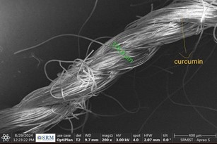 Coating of plain silk sutures with curcumin extract and honey extract was carried out under aseptic conditions at SRM College of Pharmacy in 2024.