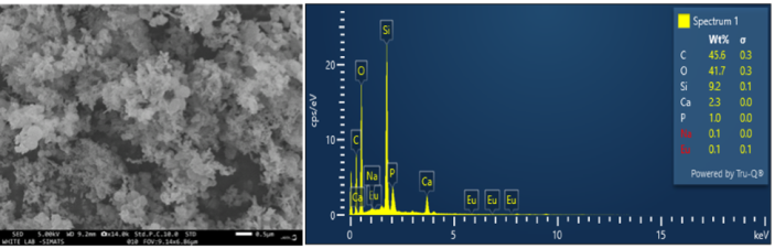 Figure 1. SEM analysis and EDX spectra of Eu-doped bioglass